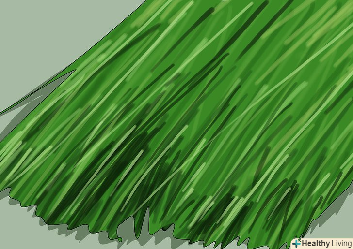 Розітріть паростки.товкачем ретельно розітріть листя, поки вони не почнуть злипатися і розмазуватися по дну ступки. Товкачем робіть перемішуються руху і натискайте з достатньою силою, щоб розчавити траву. Це займе кілька хвилин і зажадає зусиль, так що будьте готові.