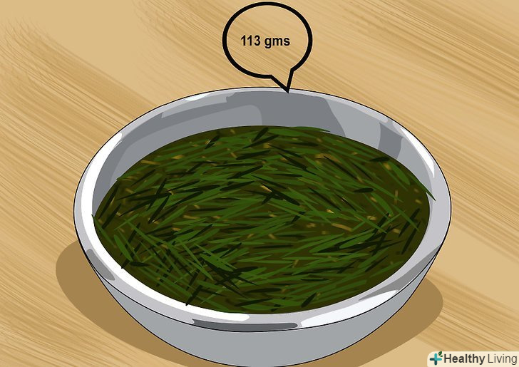 Зберіть достатньо накришеної пшениці, щоб заповнити хоча б 1/2 склянки (115 г).при бажанні можна взяти більше або менше, але цієї кількості має бути достатньо для двох порцій соку. Цього буде достатньо, щоб скористатися всіма корисними властивостями зелених пшеничних паростків.[3]