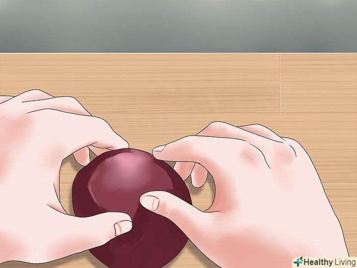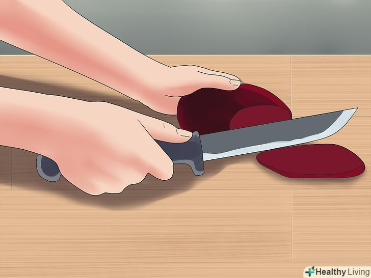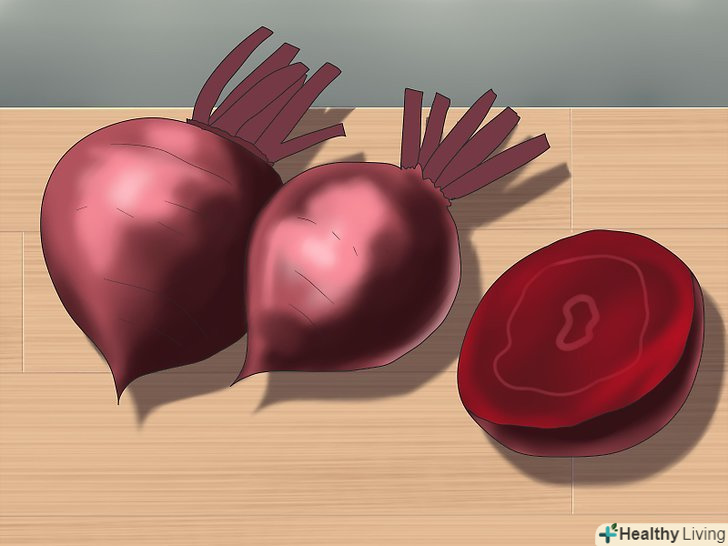 Очистіть буряк.свіжі плоди часто можуть бути обліплені брудом. Використовуйте щітку для овочів і з усіх боків очистіть плоди. Ретельно промийте під холодною проточною водою. Якщо ви виявите плями, обріжте їх ножем.[2]