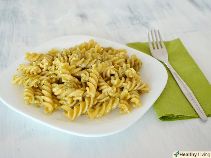 Приготуйте соус песто.як правило, соус песто готують з часнику, солі, кедрових горіхів, базиліка і сиру. Всі інгредієнти змішують, щоб вийшов соус або спред. Коли ви будете в наступний раз готувати соус песто, спробуйте замінити кедрові горіхи смаженими гарбузовим насінням, а частина базиліка-листям кульбаби.[11]