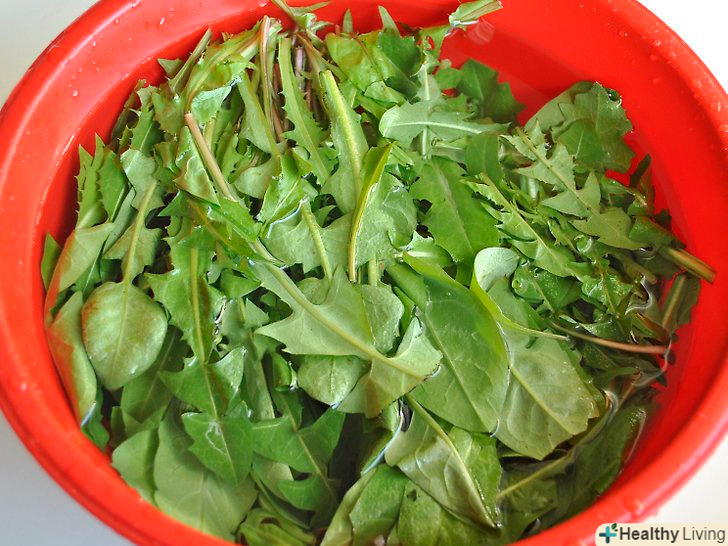 Замочіть кульбаби.поки вода закипає, наповніть велику миску водою і додайте в неї чайну ложку (5 г) солі. Замочуйте листя 10 хвилин, а потім злийте воду.