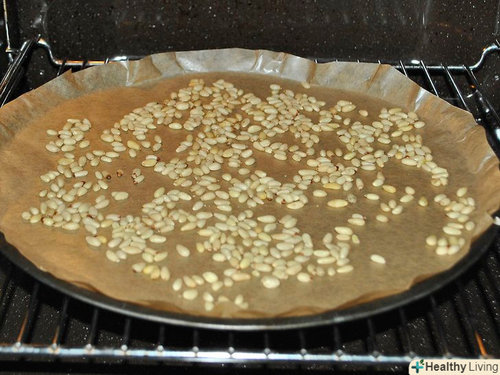Посмажте горіхи.розігрійте духовку до 180 °C. розкладіть горіхи на деку в один шар і запікайте 10 хвилин (5 хвилин, якщо це кедрові горіхи і 10 хвилин — якщо це мигдаль). Переверніть або перемішайте горіхи, коли пройде половина часу.[6]