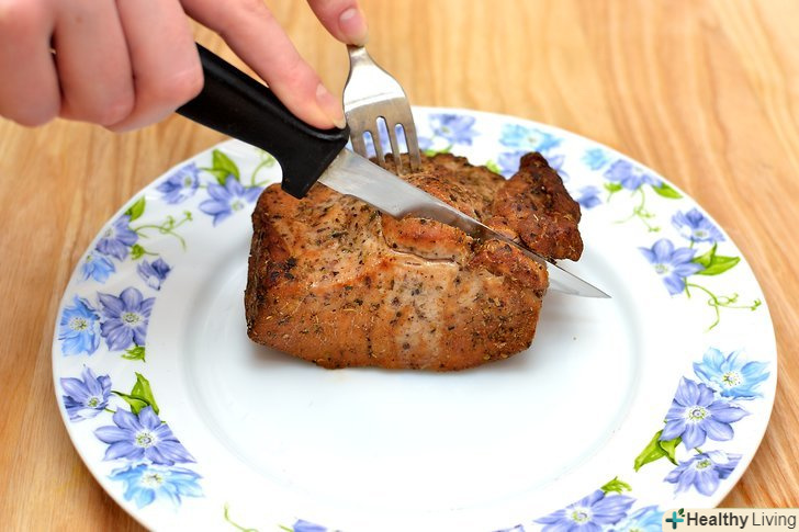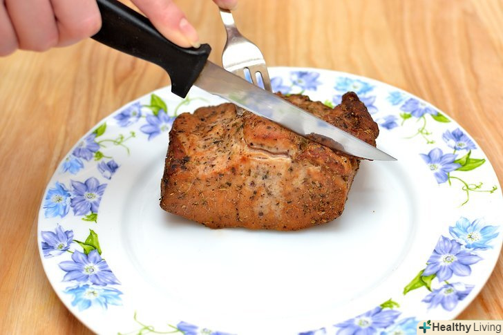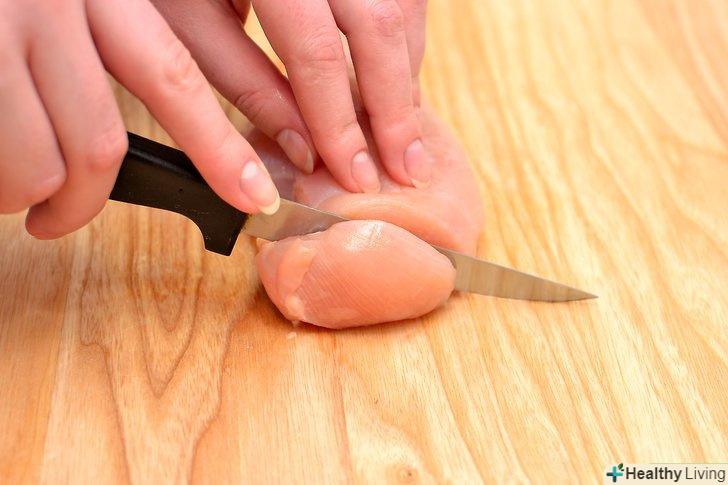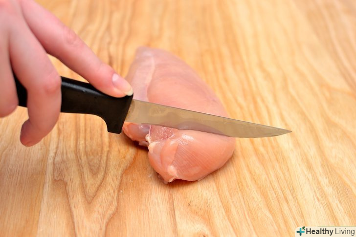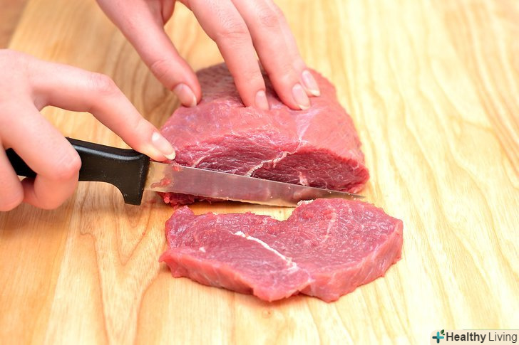 Проведіть ножем через м'ясо і застосуйте тиск, спрямований вниз.