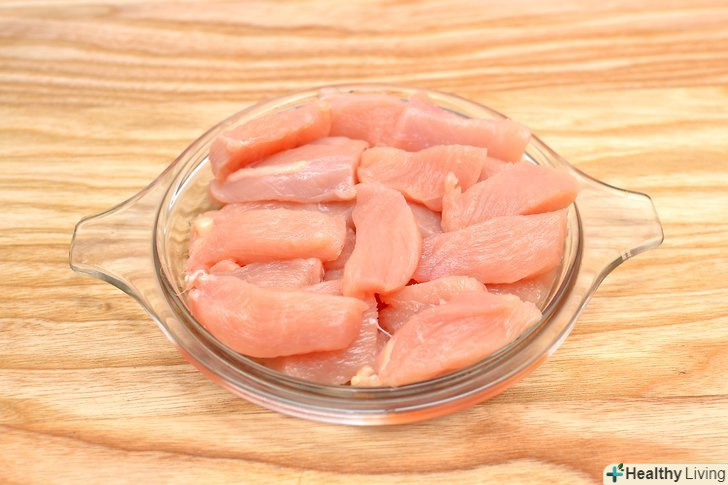Наріжте м'ясо на тонкі брусочки, а не на скибочки, для швидкого приготування на високому вогні. М'ясо, нарізане скибочками, дуже легко пережарити. Воно може підгоріти зовні і залишитися сирим всередині.
