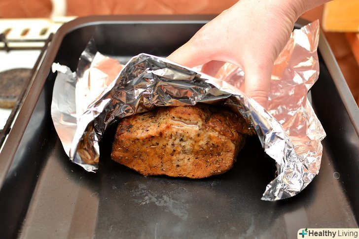 Відірвіть відрізок алюмінієвої фольги від рулону.прикладіть її щільно до м'яса, утворюючи над ним»намет". Нехай так спекотне постоїть 15-20 хвилин до нарізки.