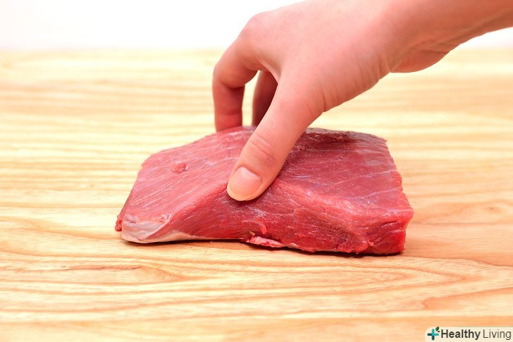 Проколіть м'ясо виделкою в 1/2 " (12 міліметрів) від краю.це зробить м'ясо стійким без необхідності чіпати його руками. Тримайте вилку не домінуючою рукою, поки нарізаєте м'ясо.