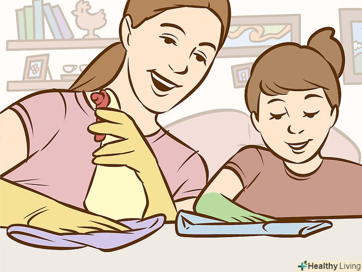Приберіться за собою, після того як приготували їжу.як тільки перекус готовий, приберіть всі невикористані компоненти страви в холодильник або шафки. Це дозволить іншим членам сім'ї швидко знайти необхідні продукти і застосувати в своїх цілях.[15][16]- Обов'язково приберіть впали на підлогу крихти. Протріть стільницю вологою губкою, якщо на ній є залишки їжі або щось липке.