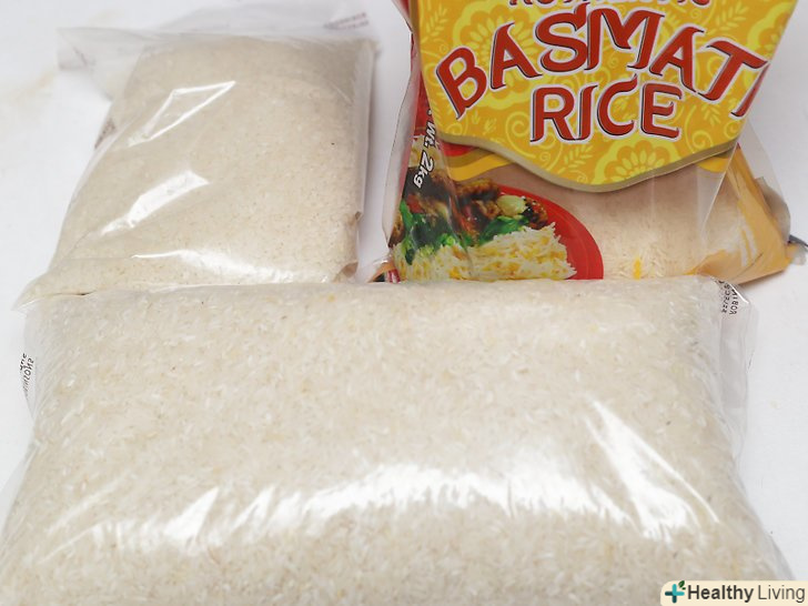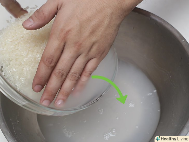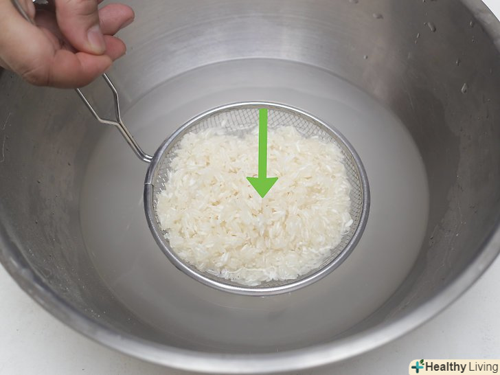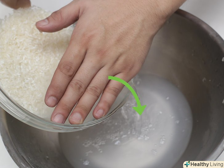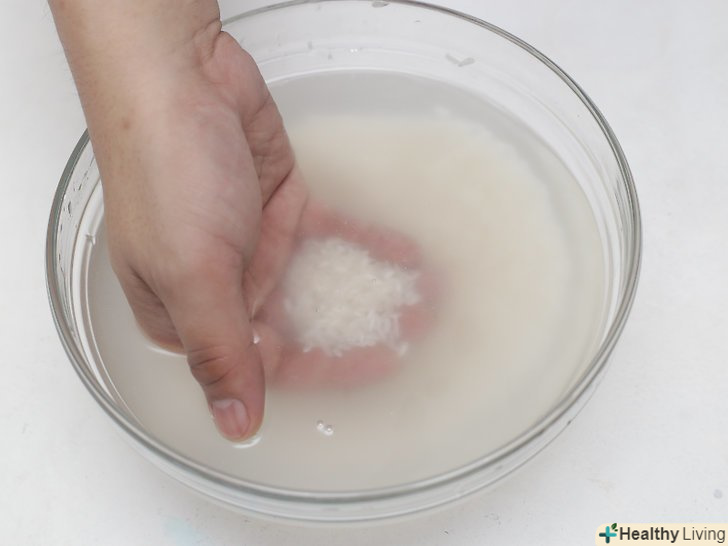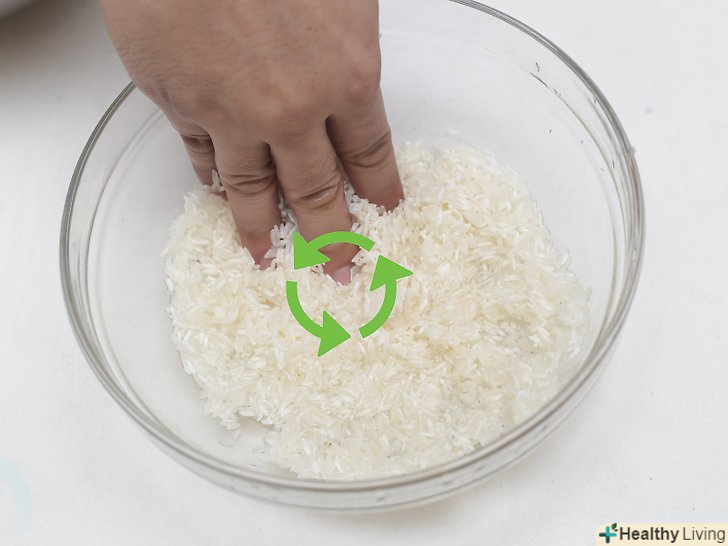 Ефект Промивання для крохмалю.Одна з головних цілей промивання рису-це видалення крохмалю, який знаходиться на поверхні зерен. Якщо рис не промити перед варінням, рисові зерна злипнуться, через що готову страву буде мати грудкувату і клейову текстуру.[5] якщо ви готуєте рис на пару, то спочатку промийте його, щоб видалити крохмаль — так рис вийде легким і без грудочок. Якщо ви готуєте страву, для якого потрібно клейкий рис, наприклад, різотто або рисовий пудинг, то цей крохмаль вам знадобиться. Для таких страв рис не потрібно промивати настільки ретельно.[6]- Короткозерний рис, швидше за все, буде склеюватися, а довгозерний рис, наприклад, басматі, після варіння зазвичай сухий з розділеними зернами.[7]
