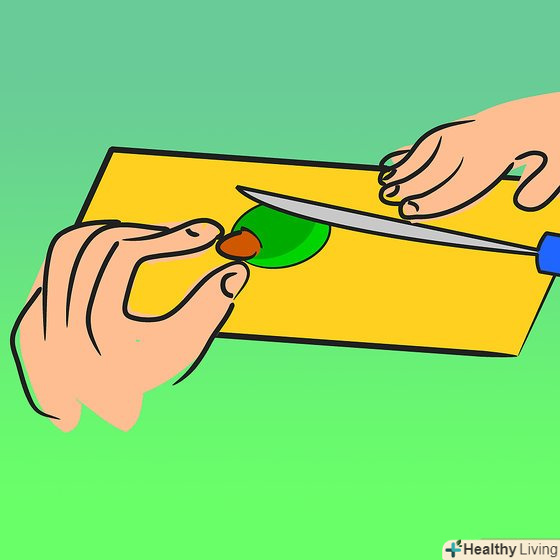 Покладіть оливку на обробну дошку, щоб не створювати безлад на робочому столі.