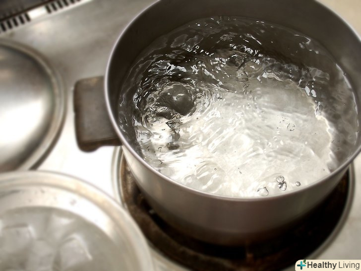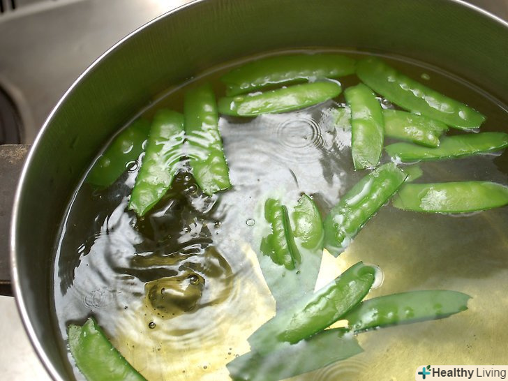 Бланшуйте горошок.горошок потрібно бланшувати, щоб він виглядав свіжим і зеленим. Без бланшування він почорніє і втратить смак. Щоб бланшувати:- Закип'ятіть велику каструлю води. Наповніть велику миску крижаною водою і киньте туди кілька кубиків льоду. Відставте в сторону для вже бланшованого горошку.
