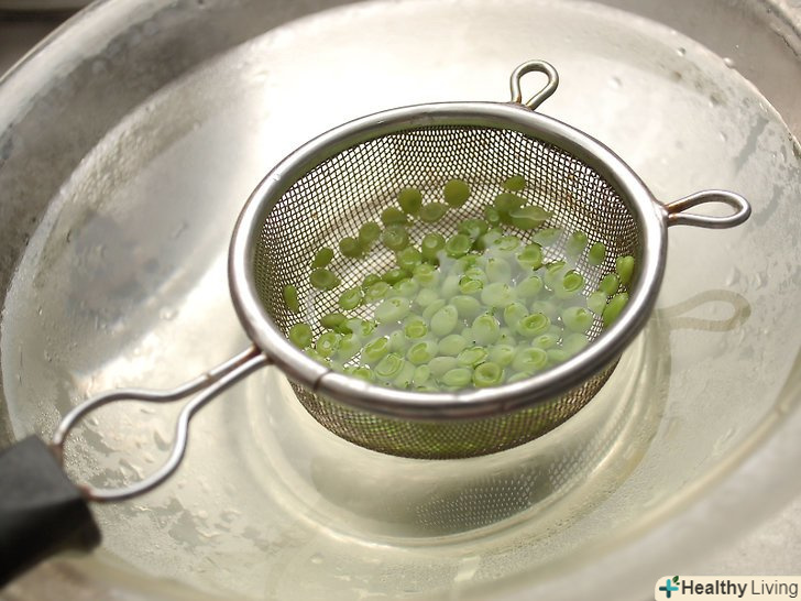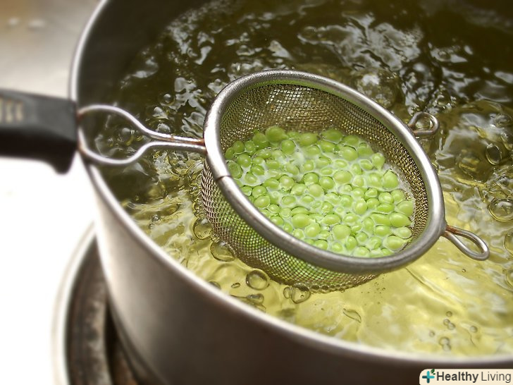 Очистіть горошок.як і зі стручками, викиньте всі зерна з точками або цвіллю.- Якщо у вас багато горошку, знайдіть помічників. Це довга робота, але якщо є з ким поспілкуватися, вона може стати більш цікавою. Але працюйте оперативно - від контакту з повітрям шкірка зерен стає щільніше.[1] якщо у вас немає помічників, очищайте від стручків частинами, бланшируйте, а потім беріться за наступну частину.
