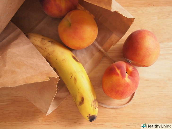 Покладіть персики в пакет.покладіть незрілі персики в пакет. Для кращого дозрівання додайте в пакет банан або яблуко. Ці фрукти виділяють багато етилену і сприяють ще більш швидкому дозріванню персиків.