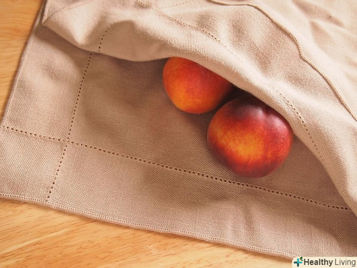 Прикрийте персики.накрийте персики другою лляною серветкою. Прикрийте їх повністю, якщо можливо, подоткніте серветку по сторонам, щоб не надходило свіже повітря.