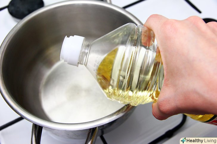 Візьміть каструлю з товстим дном і нагрійте її на помірному вогні.нагрівання, додайте 1 столову ложку рослинної олії і покрутіть каструлю так, щоб масло повністю розтеклося по дну.