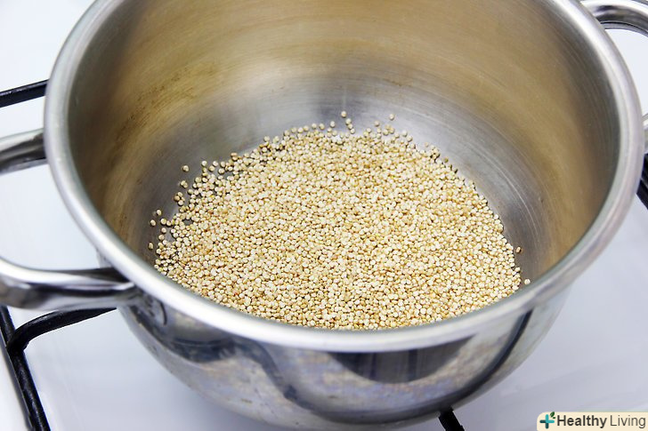 Насипте кіноа так, щоб покрити дно каструлі. Щільно закрийте каструлю кришкою. Постійно струшуйте каструлю після того. як кіноа почне клацати.