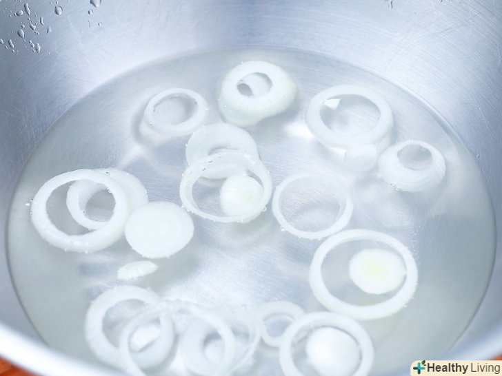 Складіть цибулю в миску зі свіжою водою.переконайтеся, що весь лук занурений у воду.