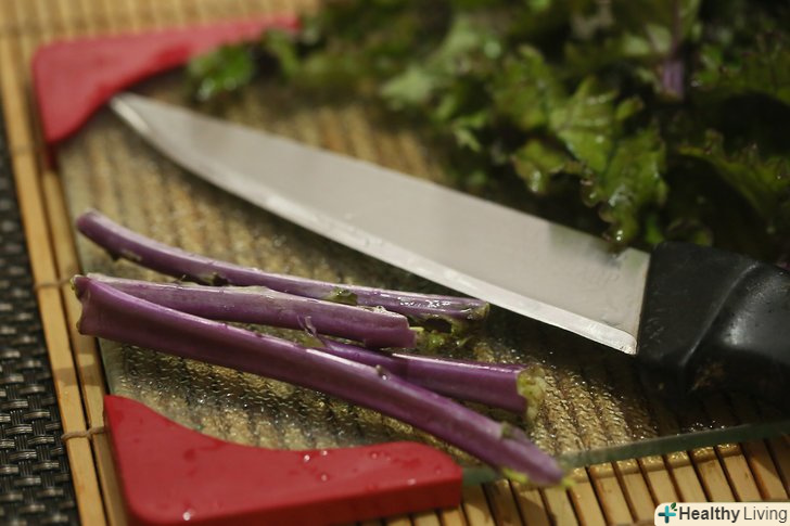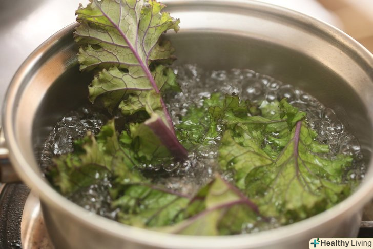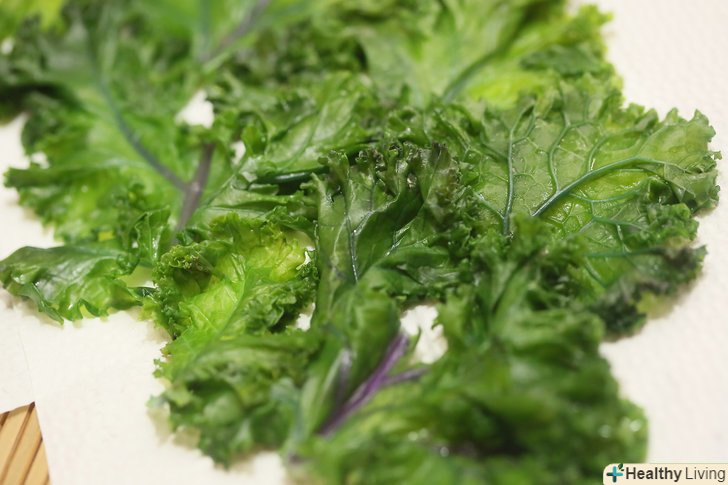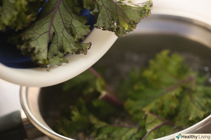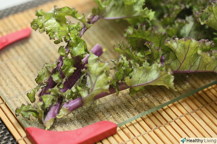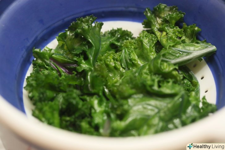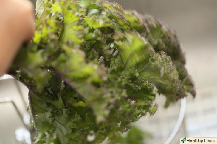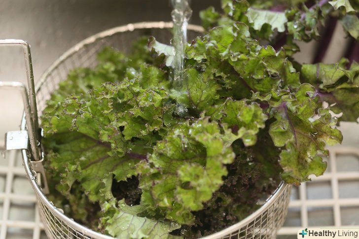 Ретельно помийте капусту кале.замочіть її в миску з водою протягом декількох хвилин, потім руками в проточній воді почистіть листя від стебла.- Якщо вибрали свіжу капусту, то на ній можуть бути комахи, що прилипли до листя і стебла, які можна змити за допомогою цього методу.