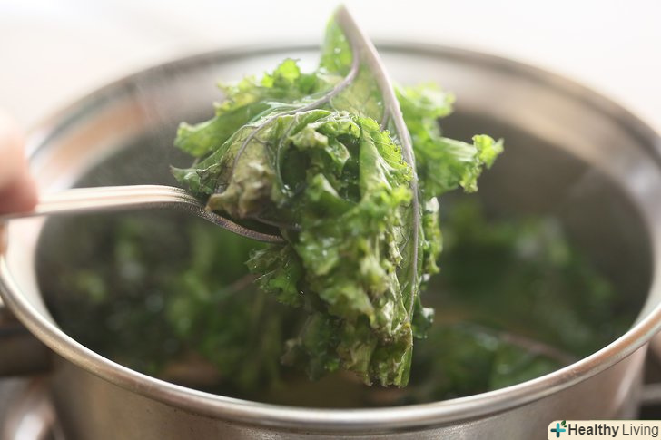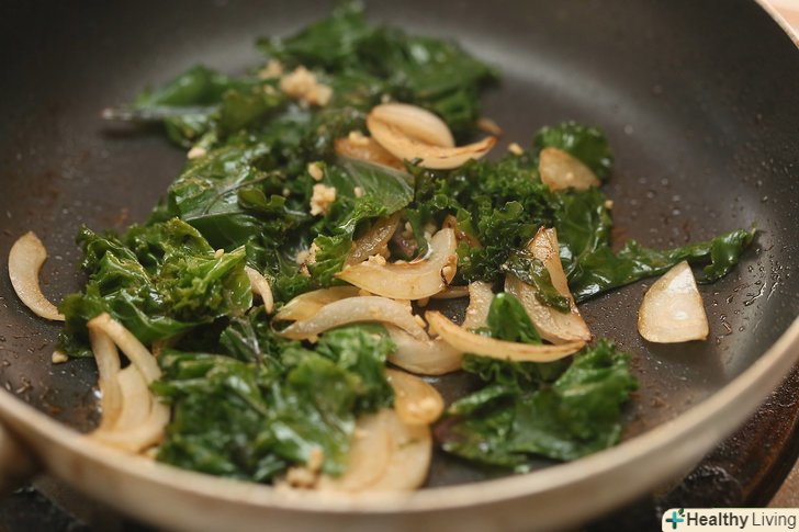 Нагрійте на середньому вогні 2 ст.л. (30 мл.) оливкової олії, щоб підсмажити заморожену або недавно бланшовану капусту кале.підсмажте часник, потім через 1 хвилину додайте капусту. Смажте протягом 2-5 хвилин.- Заморожену капусту необхідно трохи більше часу підсмажувати, ніж недавно бланшовану.
