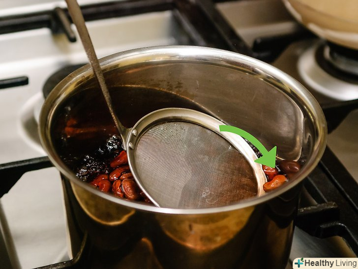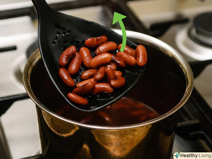 Періодично знімайте піну з поверхні води.у процесі варіння квасолі ви напевно помітите, що на поверхні утворюється сіро-Червона піна — це лектин з квасолі. Піну бажано періодично знімати ложкою.