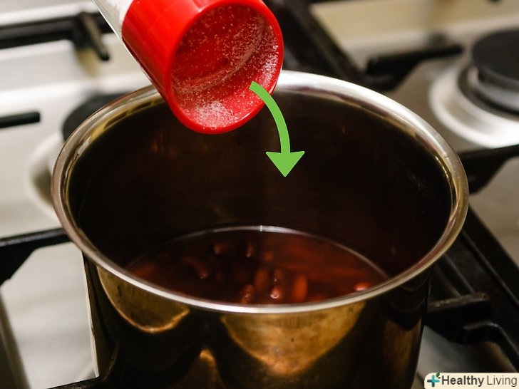 Варіть на слабкому вогні 1-2 години.після замочування добре промийте квасолю під проточною водою і залийте чистою водою приблизно на 5-8 см.поставте каструлю на плиту і доведіть до кипіння. Як тільки вода закипить, негайно зменшіть вогонь і зніміть з каструлі кришку. Готуйте квасолю на слабкому вогні. Квасоля повинна ледь кипіти-тільки так вона звариться рівномірно.- Варіть квасолю зі злегка прочиненими кришкою, якщо ви хочете отримати м'яку тане в роті квасоля, а якщо вам потрібна більш тверда квасоля, то варіть її з відкритою кришкою.