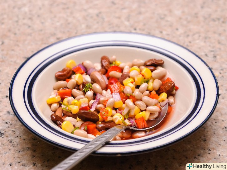 Їжте квасолю як гарнір.якщо варену квасолю підсолити і додати трохи кайенского перцю (паприки), то вийде відмінний гарнір. Квасоля багата вітаміном C, фолієвою кислотою, клітковиною, калієм і білком.[5]- Хочете швидко перекусити? З'їжте трохи квасолі зкукурудзяним хлібом. Це легко і смачно.