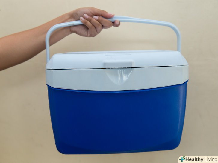 Візьміть невеликий пластиковий ящик-кулер для продуктів.пластиковий контейнер-холодильник, який ви берете на пікнік, щоб зберегти напої прохолодними, підійде, за умови, що він поміщається в вашу морозильну камеру. Кулер ізолює ваші кубики льоду і змусить їх заморожуватися повільно, зверху вниз.