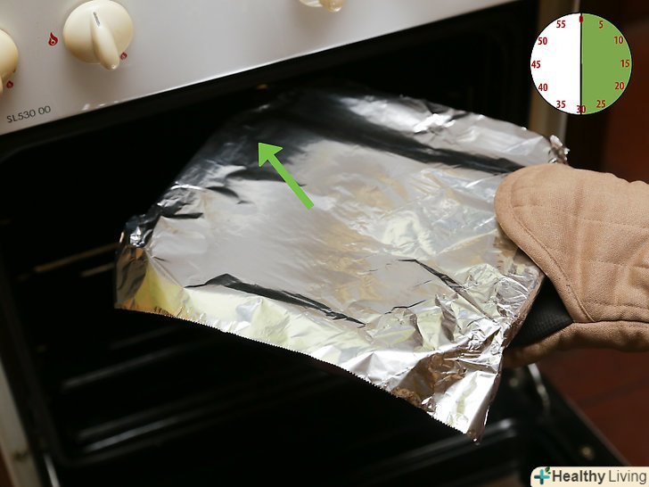 Запікайте ще близько 30 хвилин.накрийте блюдо і поверніть його в духовку. Запікайте ще 30 хвилин при температурі 170-180 °С. Через півгодини дістаньте рис з духовки.[15]