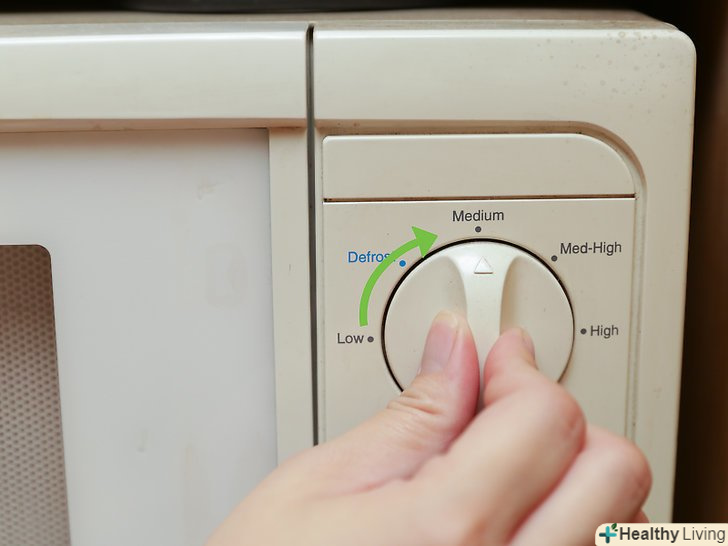 Встановіть мікрохвильову піч на середню потужність.встановіть потужність печі на середню. Готуйте рис на середньому режимі протягом 30 хвилин. Потім дайте рису постояти 10-15 хвилин.[23]