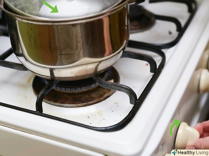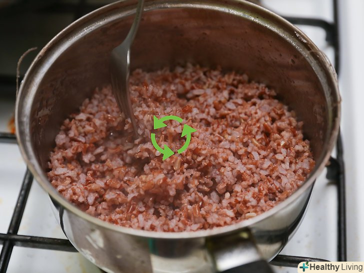 Зменшіть вогонь і закрийте кришкою.коли вода закипить, зменшіть вогонь і накрийте каструлю кришкою. Залиште рис варитися, до тих пір поки насіння не набухнуть і не лопнуть. На це необхідно приблизно 30-60 хвилин.- Періодично перевіряйте, як вариться рис, але не перемішуйте його.[8]