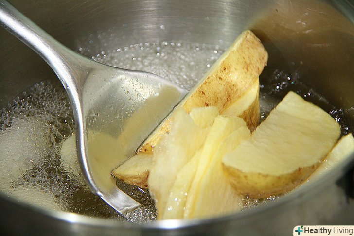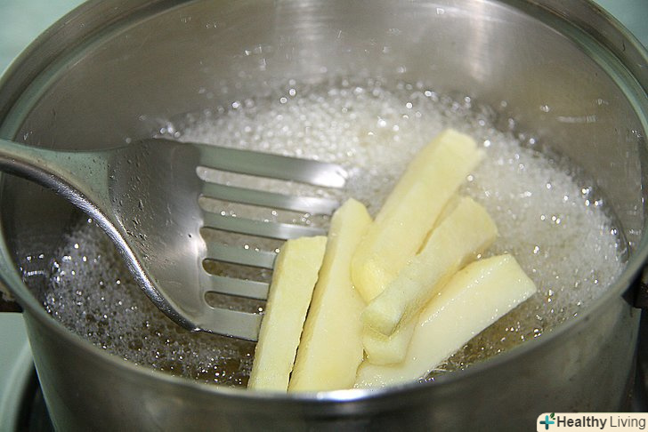 Для великих сирих чіпсів і часточок - опустіть їх в масло.попередньо можна сполоснути картоплю, але він обов'язково повинен бути висушений на паперовому рушнику, інакше він буде підгоряти.