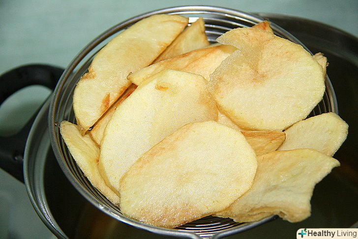 Витягніть чіпси, коли вони стануть світло-золотистого кольору, це може статися через 5 хвилин. Картопля має добре просмажиться.