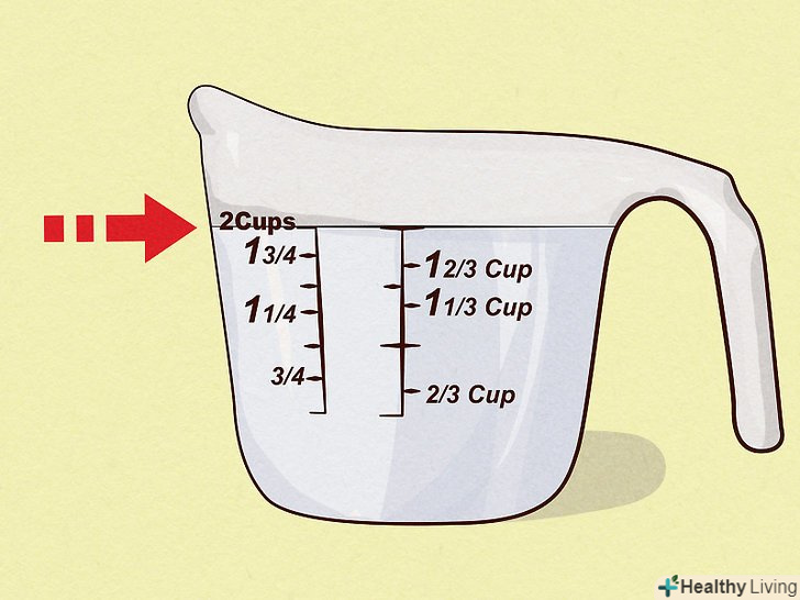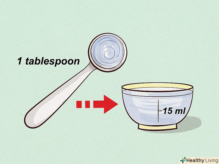 Налийте 15 мл будь-якої рідини.одна столова ложка вміщує 15 мл рідини. Це означає, що в ємність об'ємом 250 мл поміщаються 16 або 17 столових ложок рідини, що дорівнює одній гуртку. Слідкуйте за точністю вимірювання для отримання правильного результату.[3]