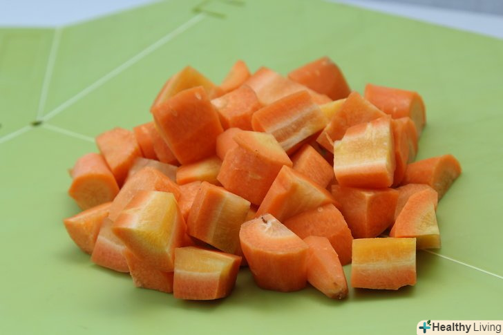 Наріжте овочі та фрукти на шматочки розміром приблизно в 2.5 см. оскільки ви збираєтеся варити продукти на пару, вам потрібно, щоб шматочки були однакового розміру, щоб вони проварилися ефективно і рівномірно. Наріжте гарбуз, батат, яблука або інші продукти, які у вас є, використовуючи гострий ніж.- Банани та інші м'які фрукти не потрібно готувати на пару, перш ніж робити їх них пюре.