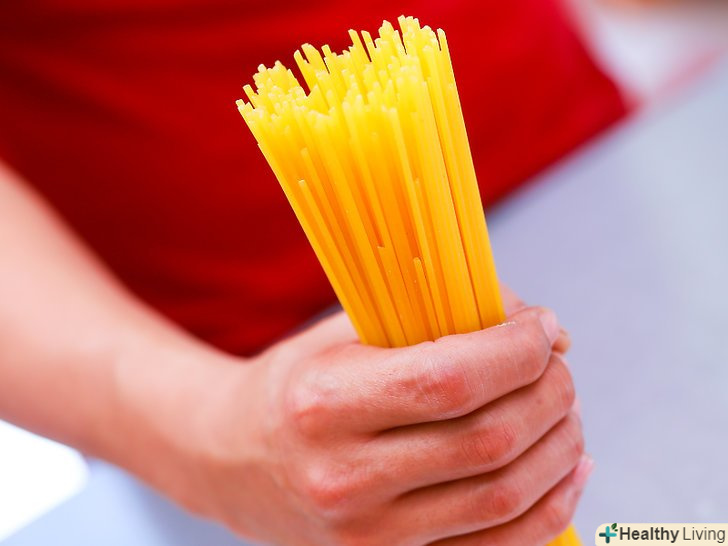Відміряйте рукою спагетті, Феттучіні, спагеттіні, капелліні, феделіні або вермішель.Візьміть пучок спагетті і Стисніть великим і вказівним пальцями. На 1 порцію макаронних виробів (55 грам) необхідний 1 пучок макаронів, Затиснутих між пальцями, діаметром 25 мм.[2] це діаметр американської кварти.- 2 порції = 45 мм, 4 порції = 90 мм, 6 порцій = 135 мм, 8 порцій = 180 мм.