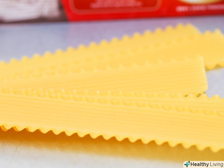 Відміряйте хвилясті листи для лазаньї, використовуючи кухонні ваги або порахувавши окремі листи лазаньї.на 1 порцію (55 грам) необхідно близько 1 ½ листів сухої лазаньї.[4]- Краще використовувати 4 шари листів для приготування лазаньї. Стандартна форма для лазаньї — 20 х 20 см, або 20 х 25 см.[5] При використанні 4 шарів листів лазаньї у формі 20 х 20 см готують страву на 4 осіб, у формі 20 х 25 см готують 6 порцій цієї страви.