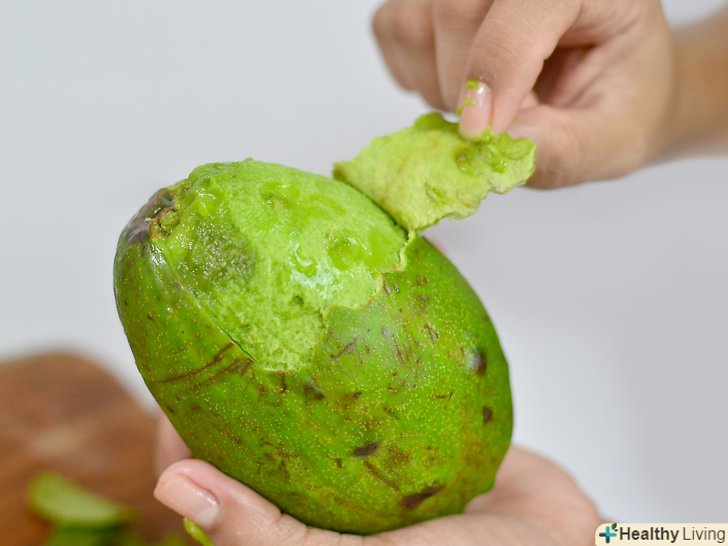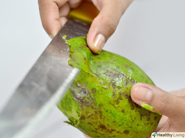 Альтернативно, зріжте шкірку ножем.якщо авокадо не зовсім стигле, шкірку досить важко видалити за допомогою пальців. В цьому випадку, можете ковзати невеликим ножем для очищення овочів між шкіркою і м'якоттю.- Це-не ідеальний метод, оскільки цим шляхом ви можете втратити більше м'якоті, ніж якби ви просто знімали шкірку пальцями.