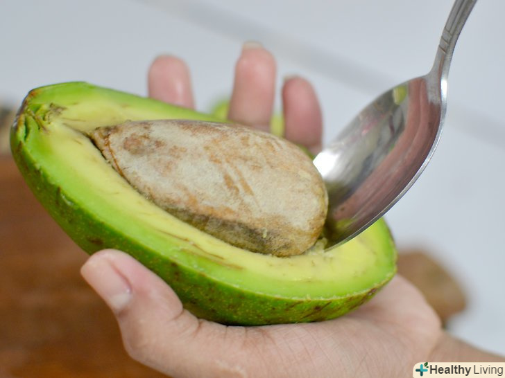 - Вискобліть насіння металевою ложкою.це-найбезпечніший метод, який можна використовувати для видалення кісточки з авокадо.