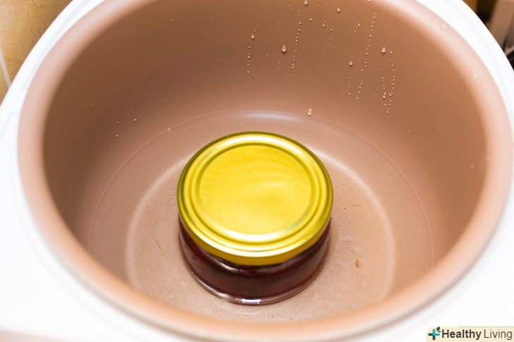 Протріть горловини банок чистою тканиною, злегка струсіть, щоб пішли бульбашки повітря, і накрийте металевими кришками.поставте закриті банки на стійку в автоклав тиску, наповнивши його 2.8 л.гарячої води.- Банки не повинні знаходитися безпосередньо на нижній частині автоклава і не повинні торкатися один одного, щоб дозволити пару вільно проходити навколо них.