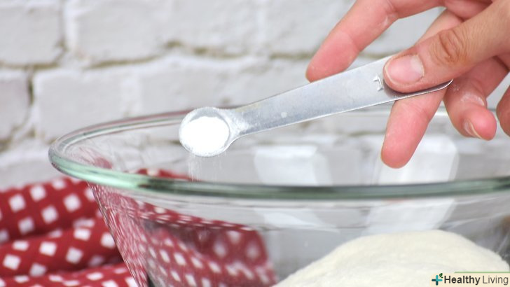 - Підготуйте піднімає агент.Візьміть окрему миску і змішайте пекарський порошок і сіль. Вам знадобиться близько 6 ¾ чайних ложок пекарського порошку і 1 1/8 чайної ложки солі. Якщо ви не плануєте використовувати отриману безглютенову самоподнимающуюся борошно повністю, то беріть по 1½ чайної ложки пекарського порошку і ¼ чайної ложки солі на кожну склянку борошна.[8]