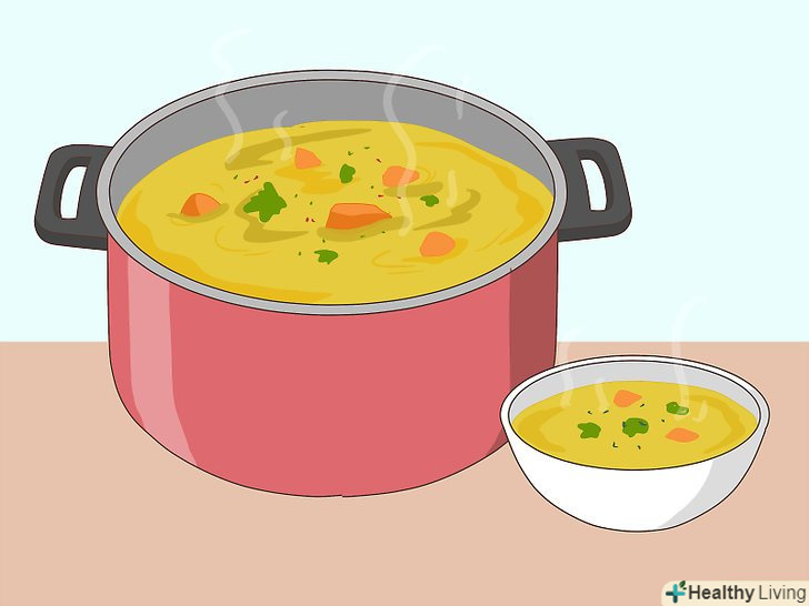Навчіться готувати супи і печеня.супи і печеня стануть відмінним наступним кроком на шляху до розширення ваших навичок, оскільки такі страви також складно зіпсувати (при наявності досить простого і зрозумілого рецепта). Для початку приготуйте відвар з овочів і поступово переходите до більш складних страв на зразок супу з брокколі і сиру.[7]- Суп і печеня-відмінний вихід в ситуації, коли у вас трохи часу. Складіть всі продукти у велику повільноварку, встановіть низьку температуру і залиште на всю ніч або до вечора, щоб після роботи побалувати себе готовим вечерею.