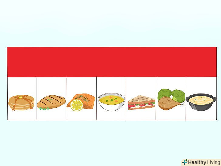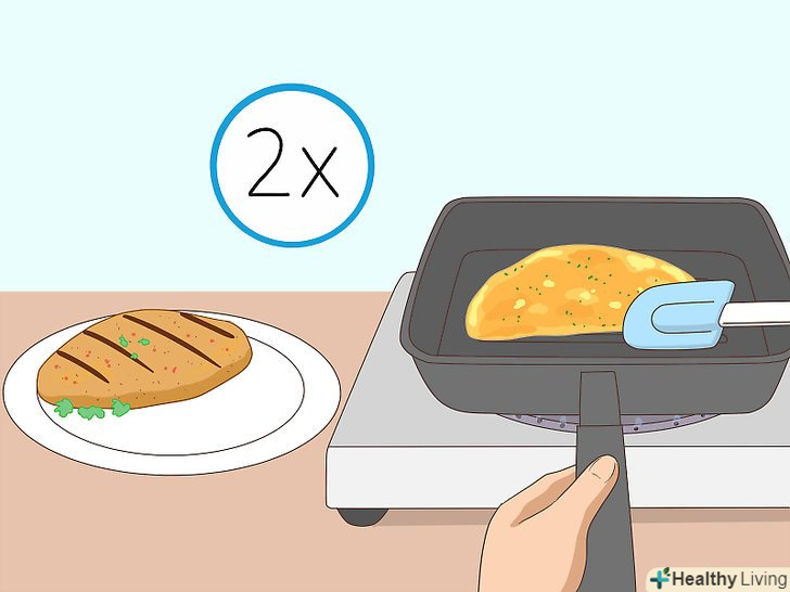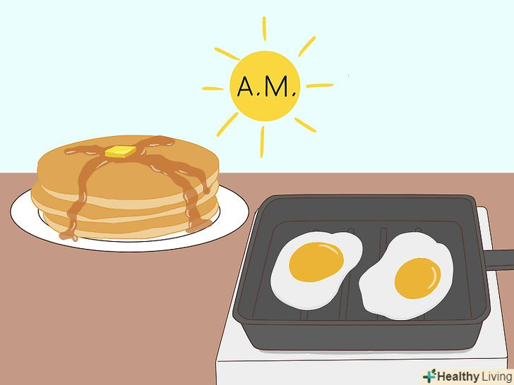 Почніть зі сніданку.страви на сніданок зазвичай одні з найбільш простих, а в рецепті досить важко припуститися помилки. Для початку спробуйте готувати різні страви з яєць, далі переходите до млинчиків і оладок, а потім до випічки і більш складним рецептами.[6]- Якщо готувати собі сніданок, то у вас з'явиться звичка регулярно снідати, яка допоможе підтримувати оптимальну вагу і отримувати заряд енергії на весь день.