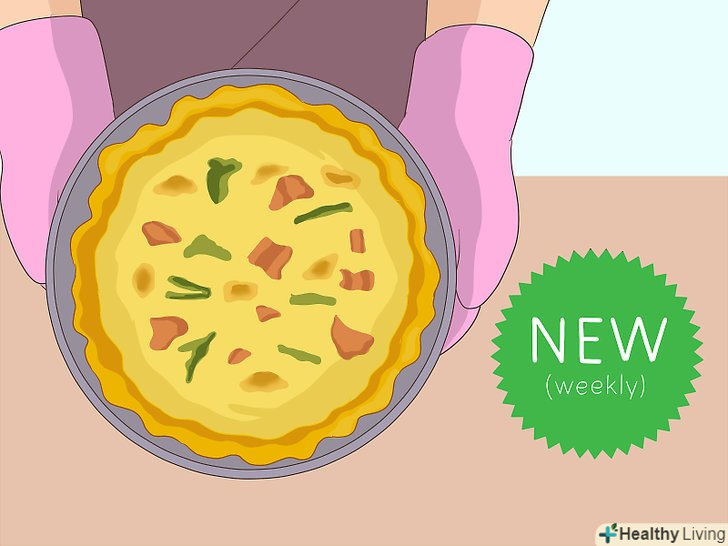Готуйте нові страви хоча б один раз на тиждень.у перший час будь-яка страва буде для вас новим блюдом. Коли накопичиться перший кулінарний досвід, продовжуйте готувати хоча б одне нове блюдо в тиждень, щоб зберегти почуття новизни і набувати нових навичок.[10]- Ваша мета-постійна практика, тому не потрібно придумувати нічого екстравагантного. Так, досить перейти від омлету до запіканки, якщо новий рецепт допоможе придбати новий навик.