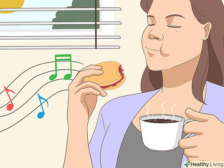 Насолоджуйтесь стравами.коли страва буде готова, Перетворіть процес прийому їжі в особливий ритуал. Кожен прийом їжі повинен бути особливим. Це дозволить вам зберігати ентузіазм і радіти приготуванню страв, а також насолоджуватися їх смаком.[13]- Вранці можна відкрити штори, включити радіо і приготувати каву або чай.