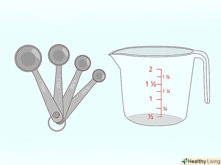 Купіть мірні стаканчики і ложки.як правило, в рецептах вказують точну кількість інгредієнтів, тому вам не обійтися без мірних стаканчиків і ложок. Кожен елемент необхідний в єдиній кількості, так як посуд завжди можна помити, але обов'язково купите повний комплект ложок і стаканчиків. Для зручності не завадить скляна вимірювальна ємність, яка вміщує не менше двох склянок.- Для деяких рецептів потрібні кухонні приналежності, що не містять алюмінію. При виборі мірних стаканчиків і ложок віддавайте перевагу виробам з високоякісного пластику або нержавіючої сталі.