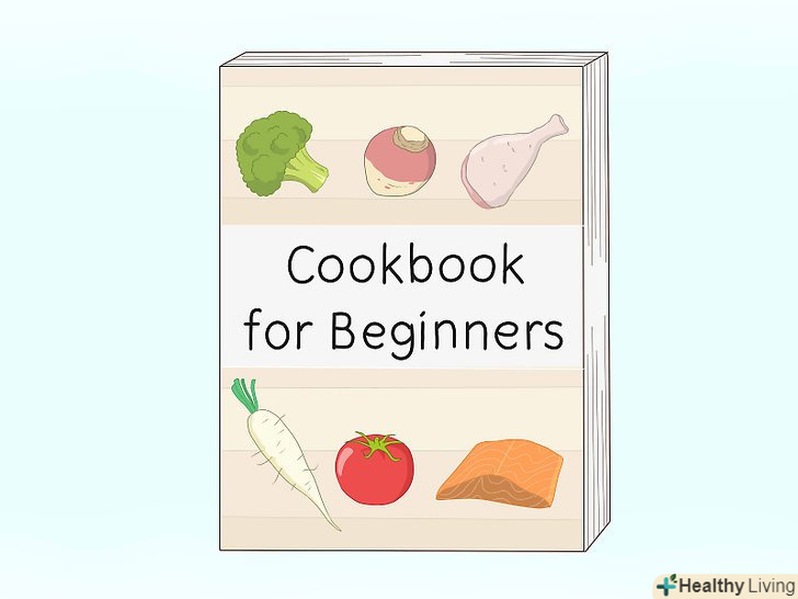 Купіть хоча б одну просту куховарську книгу.вам знадобиться хоча б одна книга з простими рецептами. Купіть видання для новачків, щоб знайти не тільки різні нескладні рецепти, а й познайомитися з термінологією і основними інструментами.[3]- Виберіть книгу для новачків з рецептами певних страв. Наприклад, купуйте кулінарний Довідник з італійськими стравами, якщо ви хочете зосередитися на стравах з пасти і соусах.