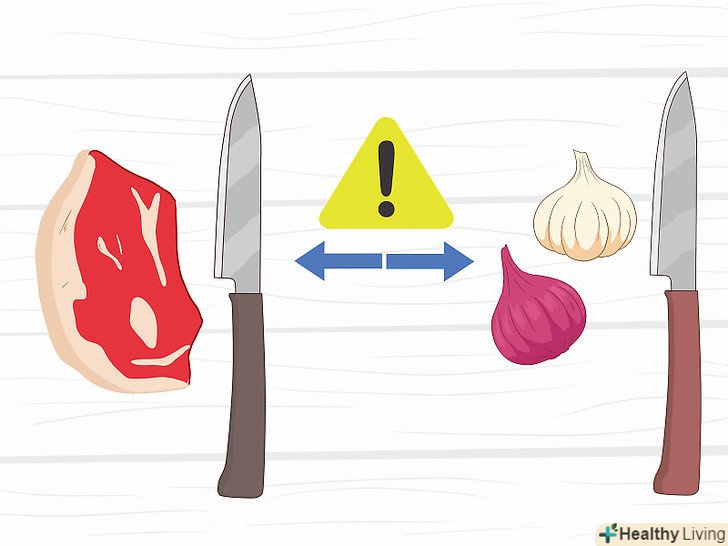 Вивчіть правила безпеки.на кухні не потрібно використовувати захисний скафандр і рукавички, але загальні правила безпеки необхідно дотримуватися. Так, ніколи не дозволяйте сирому м'ясу стикатися з іншими продуктами і завжди мийте робочу поверхню після приготування, щоб не допускати розмноження бактерій і перехресного забруднення.[4]- Готуйте м'ясо окремо від інших продуктів. Використовуйте окремий ніж, обробну дошку і навіть іншу робочу поверхню.