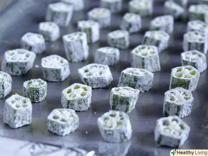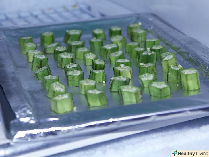 Швидко заморозьте бамію.покладіть шматочки бамії на деко в один шар. Поставте деко в морозильник на годину. Вийміть його з морозильника, коли шматочки бамії будуть досить твердими, щоб тримати свою форму.