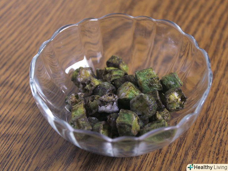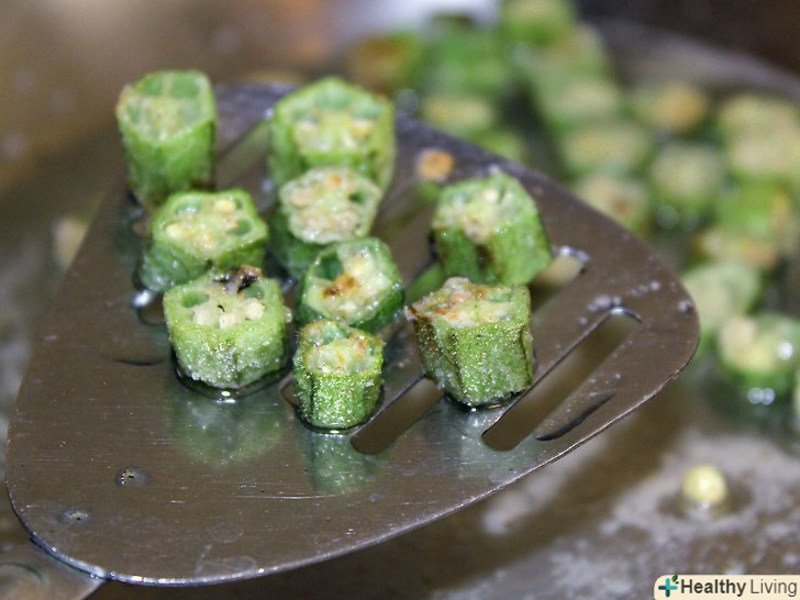 - Також можна спробувати обсмажити бамію замість бланшування. Щоб зробити це, налийте 2 столові ложки олії на кожні 500 грам бамії в глибоку сковороду. Обсмажте бамію протягом 5 хвилин, обережно помішуючи дерев'яною ложкою. Зніміть з вогню і дайте охолонути. Потім покладіть в пакети для заморожування, видаліть повітря, запечатайте і заморозьте.