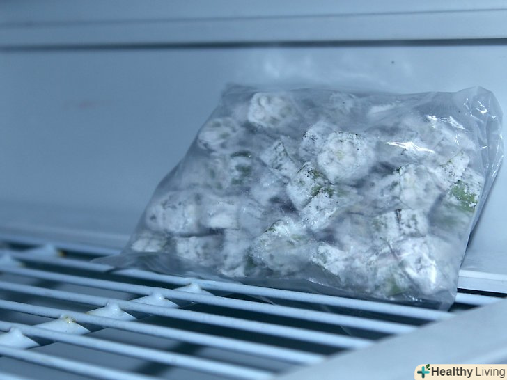Швидко заморозьте бамію.вставте лоток в морозильну камеру і заморожуйте бамію протягом 1 години, або поки шматочки не стануть твердими і злегка крижаними. Не залишайте бамію в морозильнику непокритою довше ніж на годину або холод вплине на їх структуру.