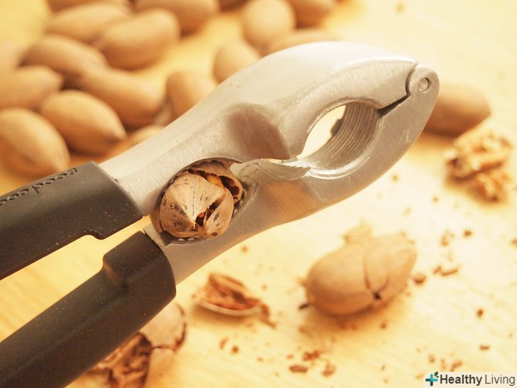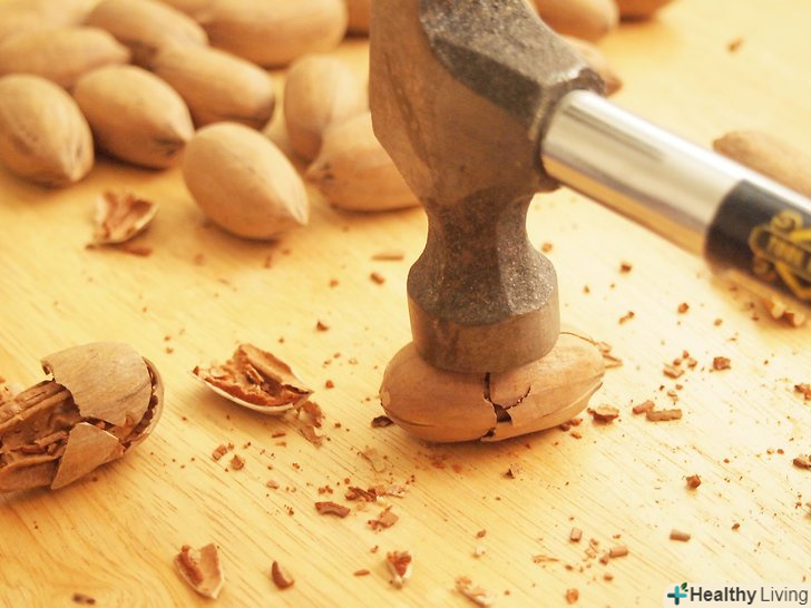 Скористайтеся молотком.найпростіший спосіб розколоти горіх пекан-покласти його на тверду поверхню і вдарити по ньому молотком.- Покладіть горіх на тверду поверхню і стукніть по ньому молотком. Можливо, вам треба буде повернути горіх і вдарити ще раз, прицілившись в інше місце. Бережіть пальці!